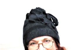 Anthrazitfarbene Mütze mit "Blumendekor"
