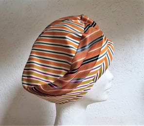 Orangefarbenes Beret aus diversen Seidenkrawatten